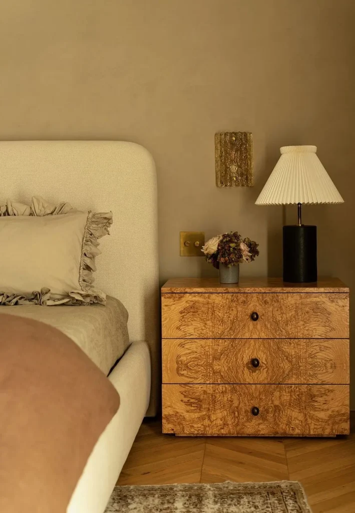 Light burl wood feels both luxurious and feminine. It’s a timeless material that adds warmth and visual interest, perfect for a more elevated feminine aesthetic.