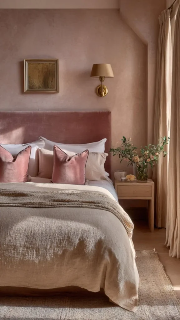 A feminine bedroom should feel layered and dynamic. Mixing textures and patterns, especially florals or nature-inspired prints adds depth and personality.