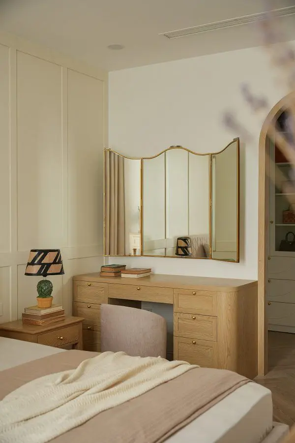 A makeup vanity instantly creates a feminine, functional moment in a bedroom. Vintage-inspired styles with large mirrors add a sense of luxury and encourage you to slow down and enjoy the space.