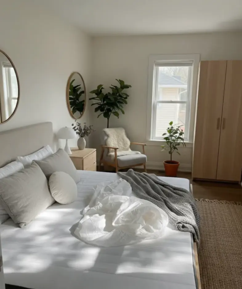 MyArchitectAI has the ability to mimic the style of an uploaded reference photo, similar to Home Visualizer AI, it’s a feature that’s both unique and useful. For this test, I uploaded a generic image of a Scandinavian-style bedroom and prompted the AI to redecorate the space in a similar aesthetic. This is what I got: